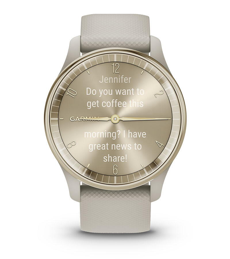 Ceasul inteligent hibrid vívomove® Trend iti ofera un design analogic clasic si functii inteligente esentiale, cum ar fi notificarile pentru smartphone si platile fara contact Garmin Pay™.
