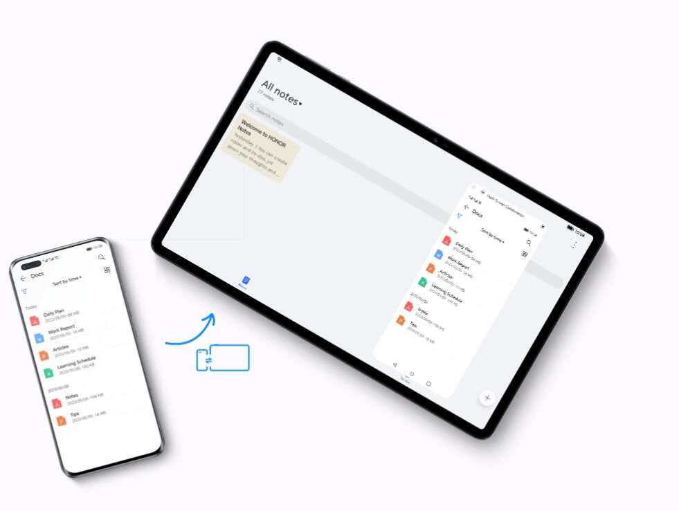 Cu partajarea ecranului intre telefon si tableta, puteti trage imagini si videoclipuri fara probleme intre dispozitive, facilitand sincronizarea sarcinii de la telefon la tableta.