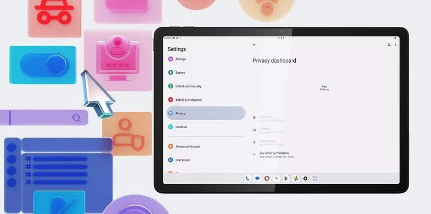 Nu trebuie sa va faceti griji cu privire la confidentialitate cu tableta Lenovo Tab M11. Imbunatatiti securitatea digitala cu Tabloul de bord de confidentialitate, cu indicatori pentru camera si microfon. Gestionati cu usurinta permisiunile de confidentialitate si ramaneti informat cand dispozitivele sunt active pentru o mai mare liniste. In plus, va veti bucura de actualizari ale sistemului de operare Android 14 si Android 15, impreuna cu corectii de securitate pana in ianuarie 2028. |
