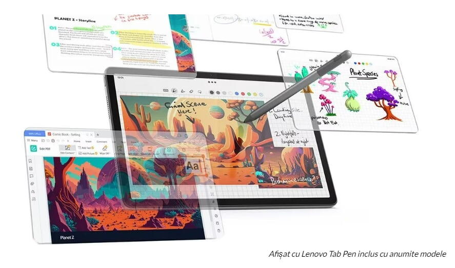 Deblocati o invatare mai inteligenta pentru mintile tinere pe tableta Tab M11 cu Lenovo Tab Pen*. Dispunand de 4.096 de niveluri de sensibilitate la presiune, suport pentru inclinare si o baterie inlocuibila de lunga durata, este usor sa iei notite, sa scrii si multe altele. |