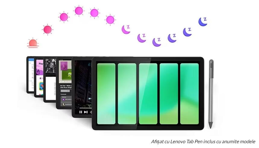 Distractia pe tot parcursul zilei va asteapta cu bateria de lunga durata a tabletei Lenovo Tab M11. Concentreaza-te pe timpul meu in timp ce micutul tau se bucura de divertisment neintrerupt pe tableta, cu pana la 10 ore de redare video. | ![]() |