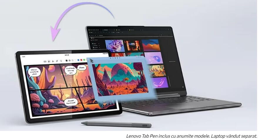 Supraalimentati sesiunile de invatare prin integrarea computerului cu tableta Tab M11 prin Lenovo Freestyle. Transforma-ti tableta intr-un monitor extern, Tab M11 devenind un al doilea ecran sau bloc de scris. In plus, Lenovo Freestyle permite transferul de fisiere intre tableta si computerul Windows. | ![]() |