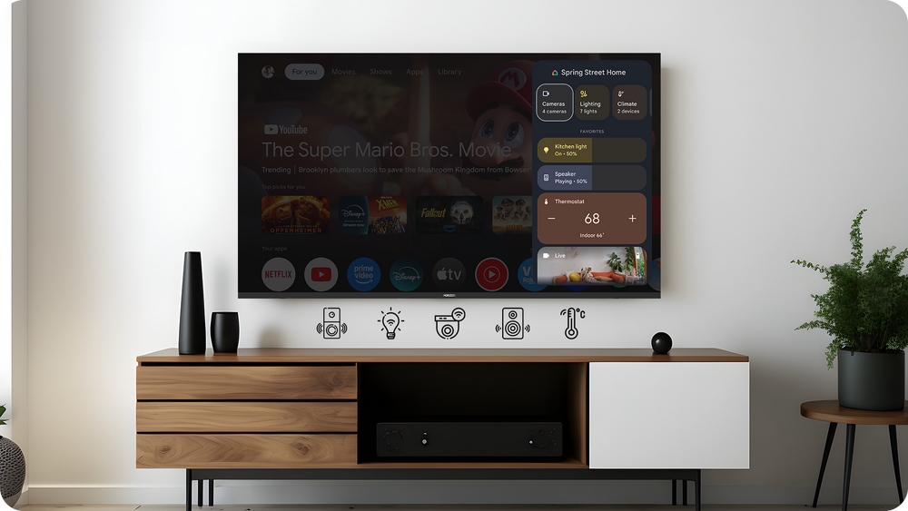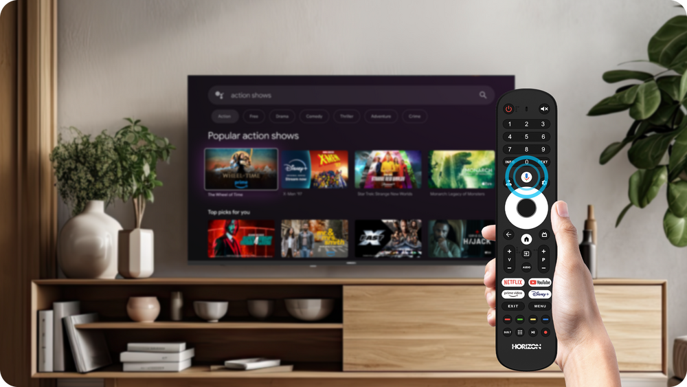Transformati televizorul Google TV de la HORIZON in centrul casei dvs. inteligente. Controlati luminile, temperatura si multe altele din noul panou de administrare. Primiti notificari de la sonerie, vizualizati camerele pe ecran complet si folositi-va vocea pentru a controla totul - doar intrebati Asistentul Google.