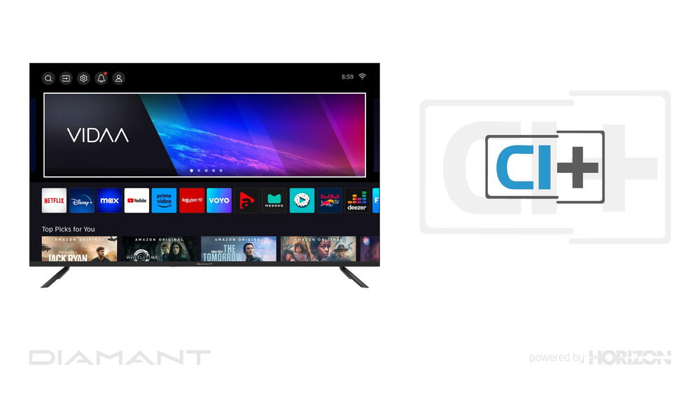 Prin platforma VIDAA disponibila pe televizoarele DIAMANT ai acces la aplicatia de streaming Disney+, ce ofera acces la un continut divers de filme si emisiuni de la Disney, Pixar, Marvel, Star Wars, National Geographic si multe altele. Disney+ este disponibil pe majoritatea dispozitivelor conectate la internet si ofera o varietate de lungmetraje originale, documentare, seriale live-action si animate sau scurt-metraje. Pe langa accesul fara precedent la incredibila biblioteca de film si divertisment de televiziune a Disney, serviciul este si platforma de streaming exclusiva pentru cele mai recente lansari de la Studiourile Walt Disney.