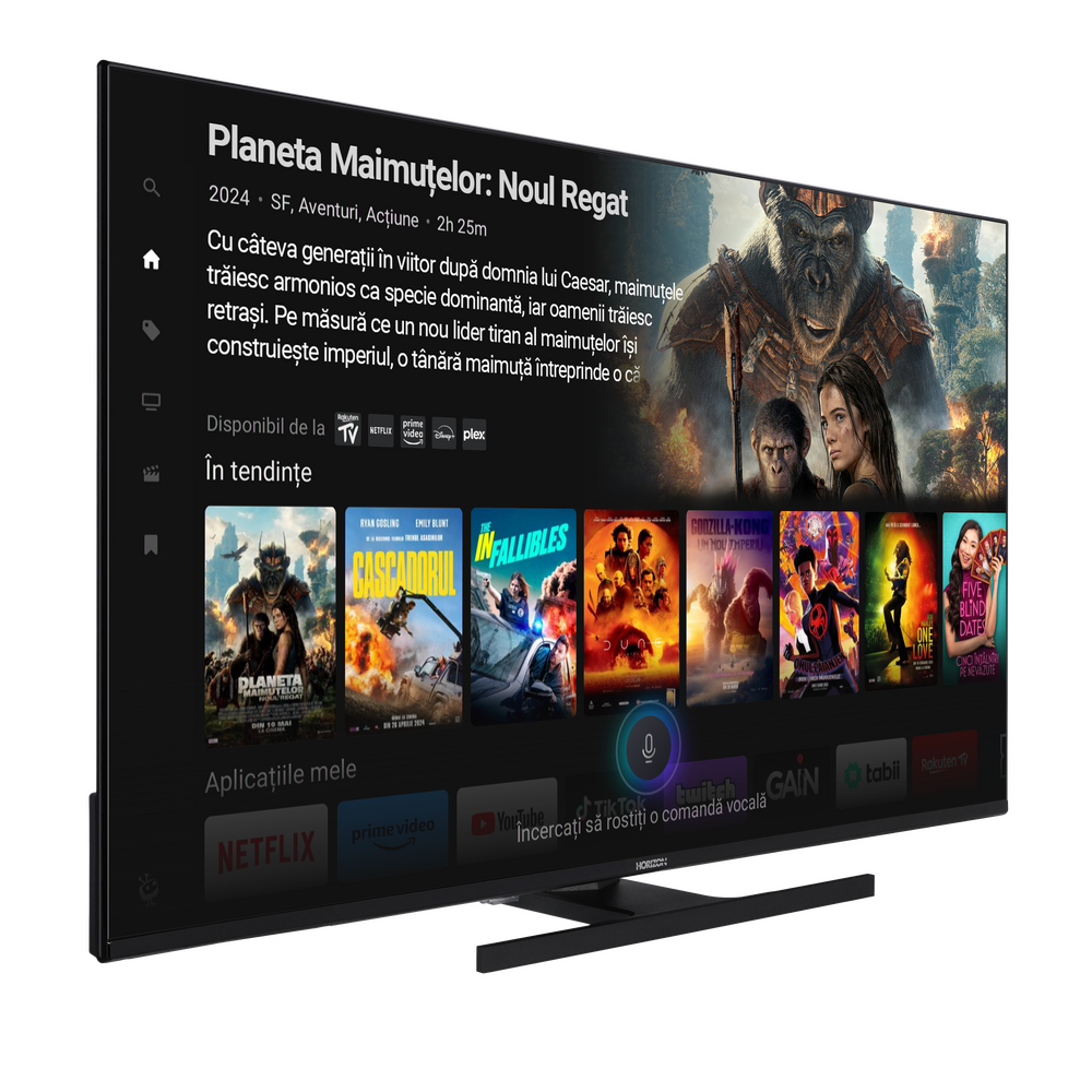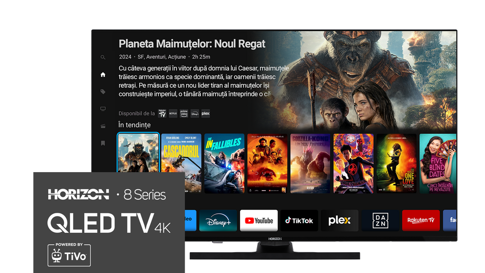 Transforma-ti experienta de vizionare cu functia de control vocal integrata in televizoarele HORIZON cu sistem de operare TiVo. Simplu si intuitiv, controlul vocal iti permite sa navighezi prin canale, sa cauti emisiuni, sa ajustezi volumul si sa accesezi aplicatiile preferate doar prin comenzi vocale4. TiVo intelege comenzile tale in mod precis si raspunde imediat, facand vizionarea mai placuta si fara efort.