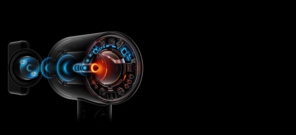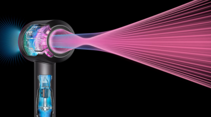 Cu pana la 110.000 rotatii pe minut, motorul uscatorului de par Dyson Supersonic Nural propulseaza in amplificator 13 litri de aer pe secunda, iar datorita tehnologiei Air Multiplier, fluxul de aer este amplificat si produce un jet de aer controlat si de mare viteza.