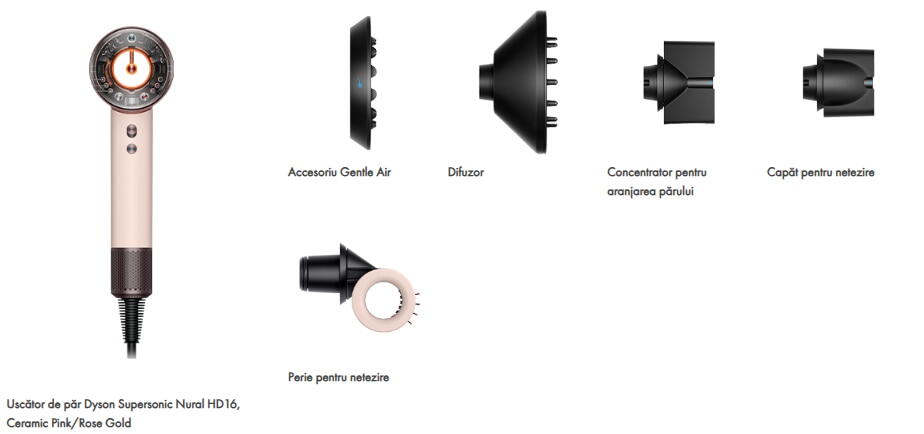 Descriere Uscator de par Dyson Supersonic Nural HD16 113407-01, 110.000 rpm, 4 setari de temperatura, 3 setari de viteze, Ceramic Pink/Rose Gold de la Dyson