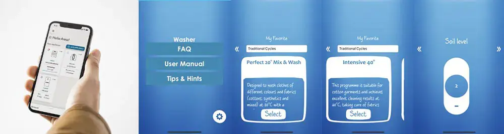 CONECTIVITATE WIFI SI BLUETOOTHUtilizeaza aplicatia hOn si iti vei putea comanda uscatorul de rufe de la distanta, si in cadrul aplicatiei ai optiunea de a da comenzile prin comanda vocala sau prin selectare optiuni pe telefon. Uscatorul de rufe din gama Smart Pro se conecteaza prin WiFi la telefonul tau mobil (Smart) cu ajutorul aplicatiei hOn. Prin aplicatie iti vei putea alege programul de uscare, cand sa inceapa programul iar la final primesti un mesaj ca s-a finalizat ciclul ales. | ![]() |