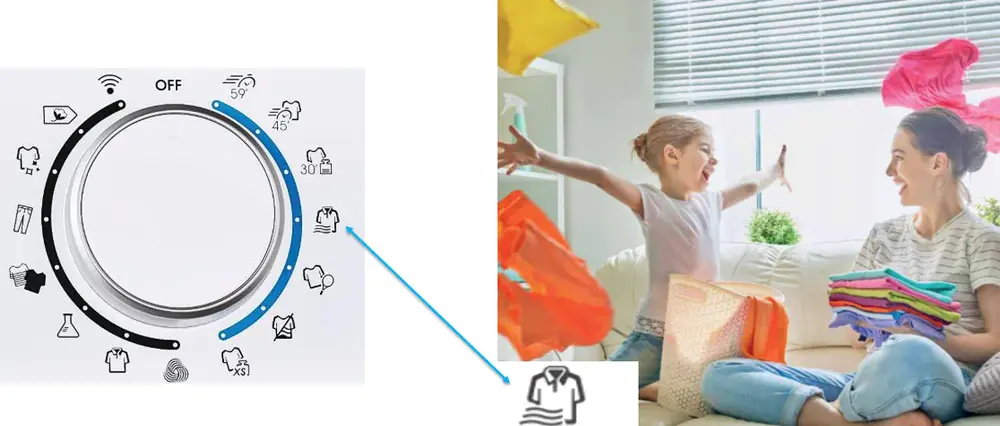 Este un program cu aer cald care reduce sifonarea rufelor in numai 12 minute.