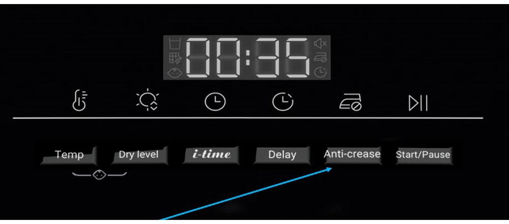 FUNCTIA ANTI-CREASE: Daca la terminare ciclului de uscare rufele nu sunt scoase din uscator, tamburul se va misca din cand in cand pentru a preveni sifonarea. Functia de protectie anti-sifonare are o durata de cca. 60 de minute.