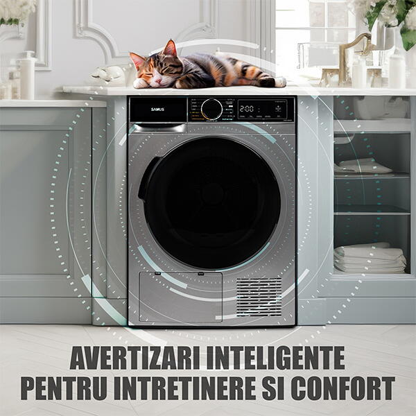 Uscatorul este echipat cu un sistem de avertizare care te tine mereu informat atunci cand rezervorul de apa trebuie golit, cand filtrele au nevoie de curatare pentru a mentine performanta optima si cand programul de uscare s-a incheiat. Aceste semnale simple si utile contribuie la o functionare sigura, eficienta si fara griji, prelungind durata de viata a aparatului si protejand hainele tale.