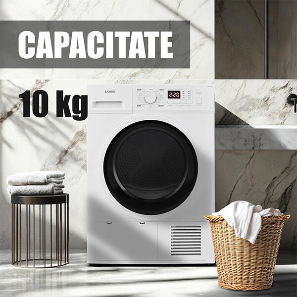 Ai o familie numeroasa sau speli cantitati mari de haine? Nicio problema! Cu o capacitate de 10 kg, uscatorul Samus iti permite sa usuci mai multe haine intr-un singur ciclu. Economisesti timp, energie si reduci numarul de cicluri necesare, ceea ce inseamna mai putine griji si mai multa eficienta.