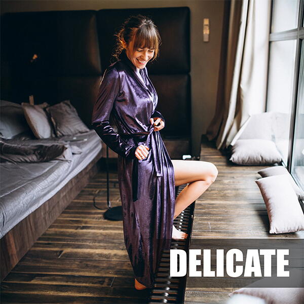 Trateaza cu atentie articolele fine, din materiale precum matase, dantela sau lenjerie intima. Utilizeaza un ciclu cu temperaturi reduse, rotatii lente si uscare graduala, care pastreaza textura si integritatea fibrelor. Astfel, hainele delicate raman catifelate, fara deformari sau deteriorari.
